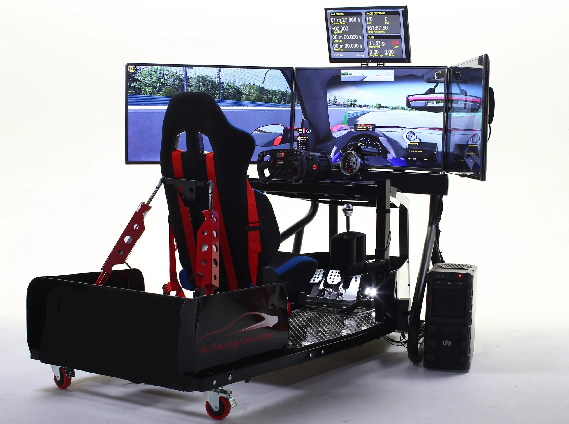 Motion Unit, Triple Screens, Custom Build Computer, Direct Drive Wheel and Hydraulic Pedals. Ready to run PC Games like iRacing, Asetto Corsa, Project Cars or even Roller Coaster or Flight Simulators titles.